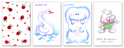 It's the 200th post on Chicken Nugget Lemon Tooty! In keeping with tradition, I'll take this centennial post to share more cards from our Family Trading Card Packs. And boy are the packs packed now! Dad had to make bigger cases for everyone -- the old ones were splitting at the seams. Here are a few favorite cards, collected over the years...